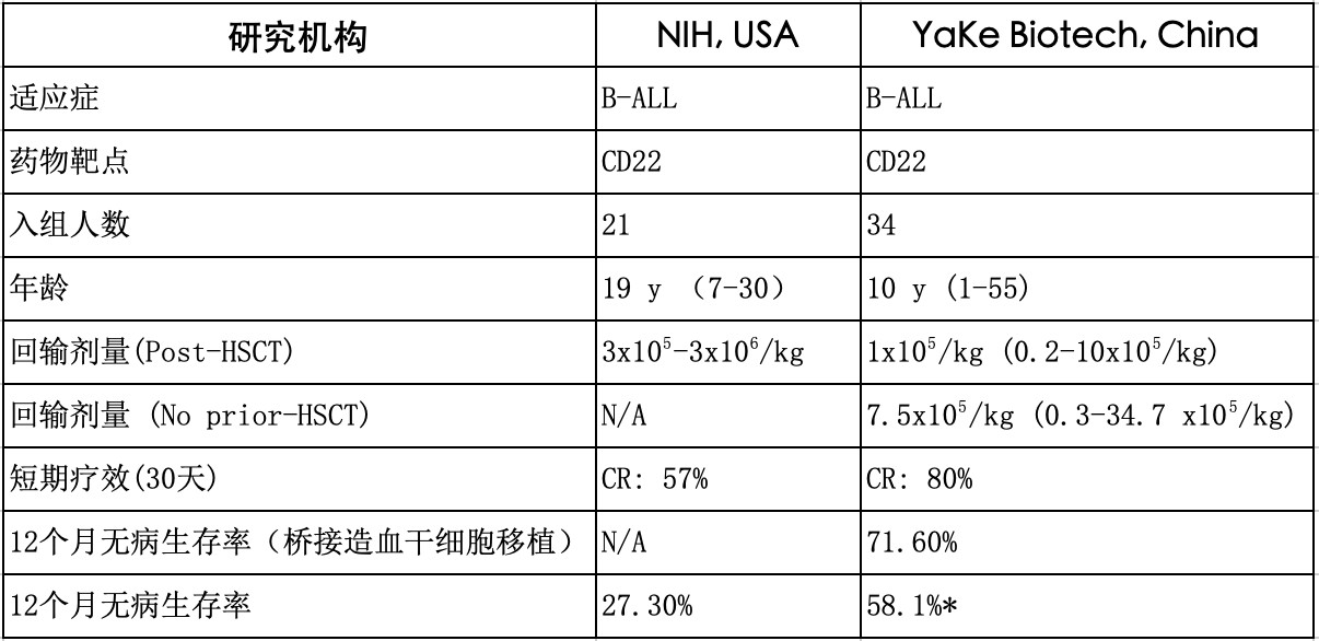 本项临床研讨接纳了雅科生物科技供给的CD19和CD22 CAR-T细胞医治手艺,并基于雅科生物科技与童春容医疗团队后期的两个首要研讨功效。